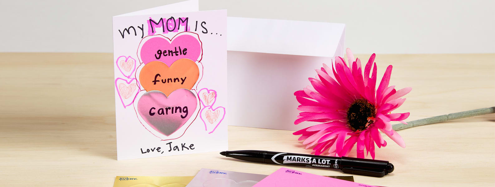 There are numerous possibilities for the hidden message. All you'll need is cardstock, mini models, pinking shears, and glue. Write wishes for your mother on the card with the help of a marker. Red pink and blue vivid bold family mother's day landscape flat card. Template can be easily adjusted to fit a variety of standard paper sizes.